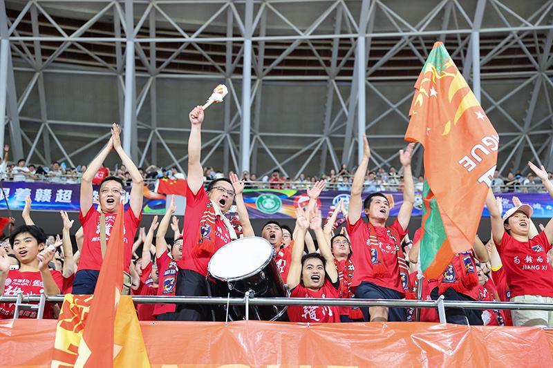 赣超赛场已经成为红色精神的“共鸣场”。从赣州“鸟巢”4.1万名观众合唱《十送红军》,到吉安赛场万人同唱《映山红》,这些震撼场景让赣超超越了普通体育赛事的范畴。