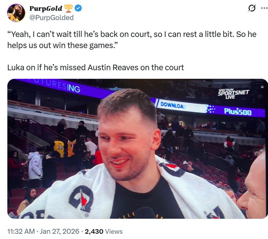 除此之外,东契奇还谈及回归在即的里夫斯,直言自己非常期待里夫斯复出,那样自己就可以休息一下了,他能帮助我们赢得比赛。